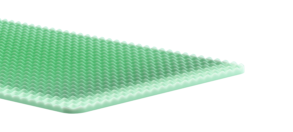 В матрасе используется ячеистая пена - искусственный материал, полученный в результате горячего или холодного вспенивания пенополиуретана с последующим нанесением на готовую плиту сквозных ячеек. Благодаря своей структуре ячеистая пена обладает ортопедическими и анатомическими характеристиками. Материал активно используется для производства матрасов и подушек благодаря полезным потребительским свойствам. Ячеистая пена хорошо пропускает воздух и влагу, не накапливаясь в структуре материала.